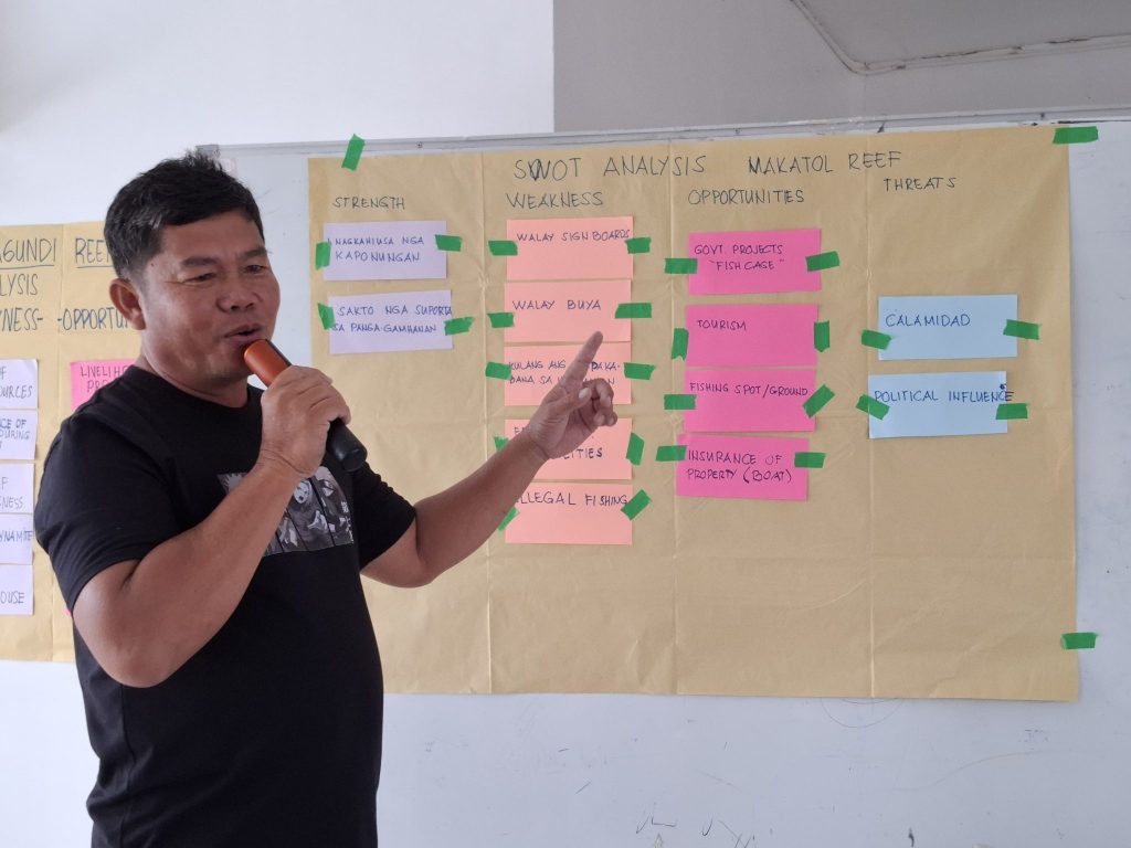 The workshop had clear objectives, guiding participants through the MPA planning process, helping them define a strategic vision for their areas, and establishing a sustainable management structure that encourages active community participation. By the end of the event, participants successfully drafted a five-year MPA Management Plan, detailing management structures with corresponding committees. This workshop empowered them to enhance their marine conservation efforts, aligning with Talisay’s broader development plans, despite the challenges posed by industrial development in the area.