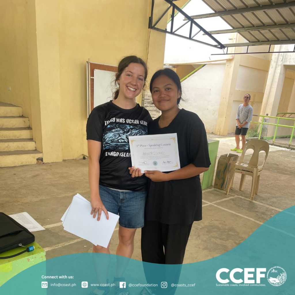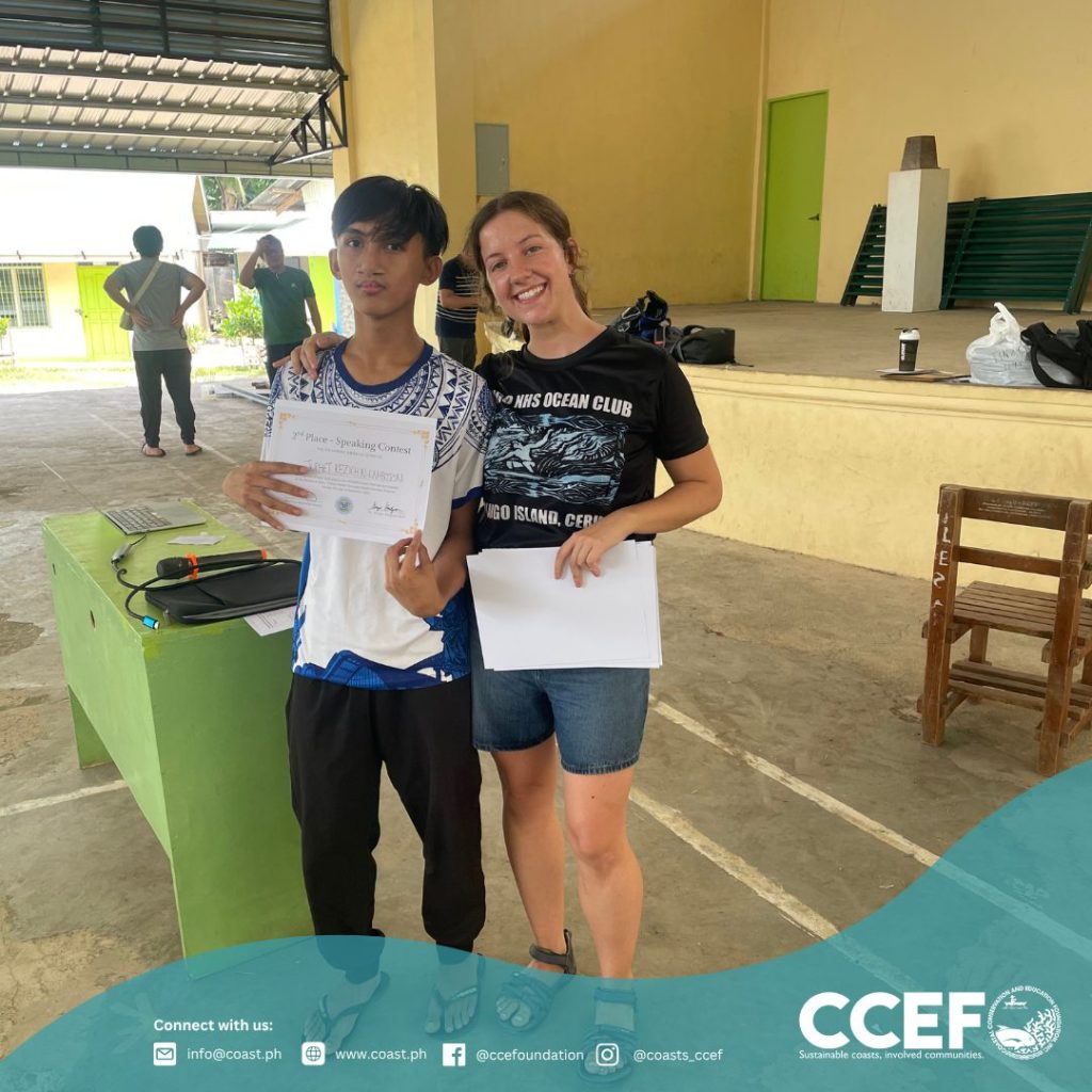 Judged by a panel of educators and conservationists, the contest showcased the students’ evolving understanding of marine issues and their personal calls to action. After lunch and survey administration by Peace Corps M&E, winners were announced—celebrated not just for eloquence, but for heart.