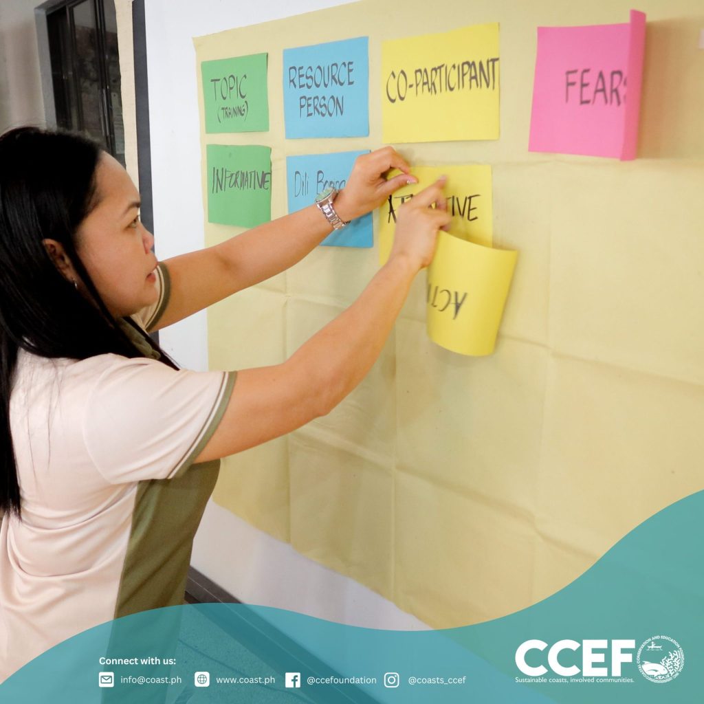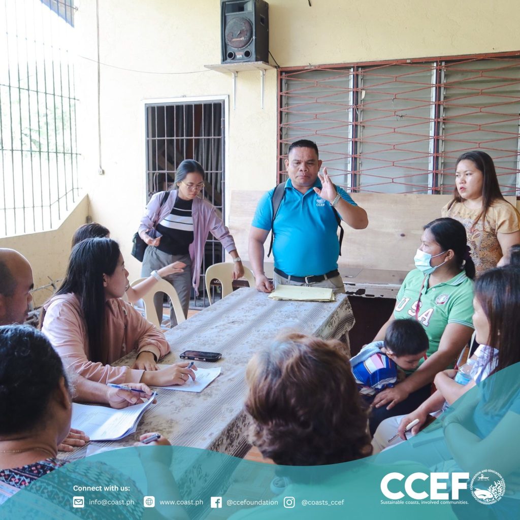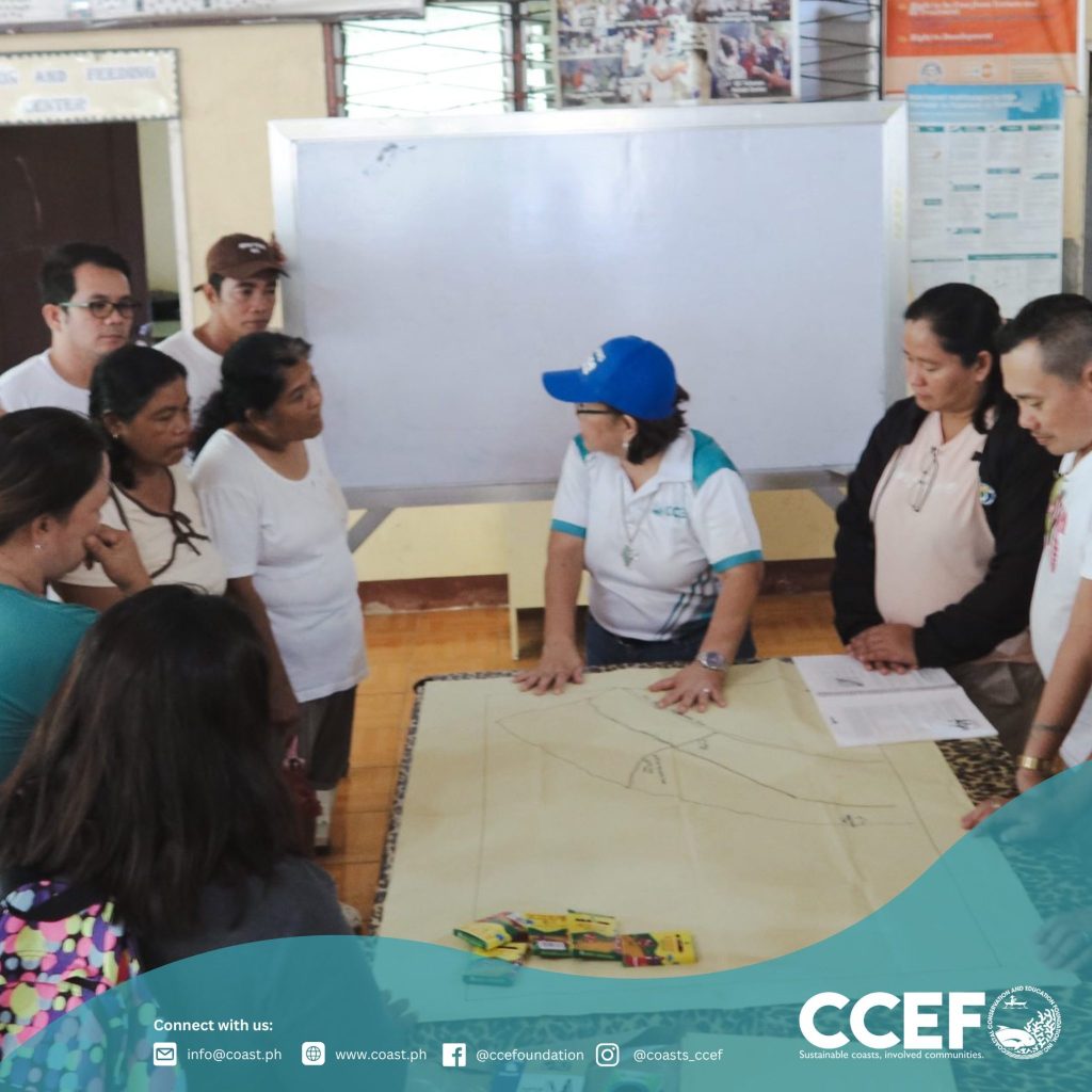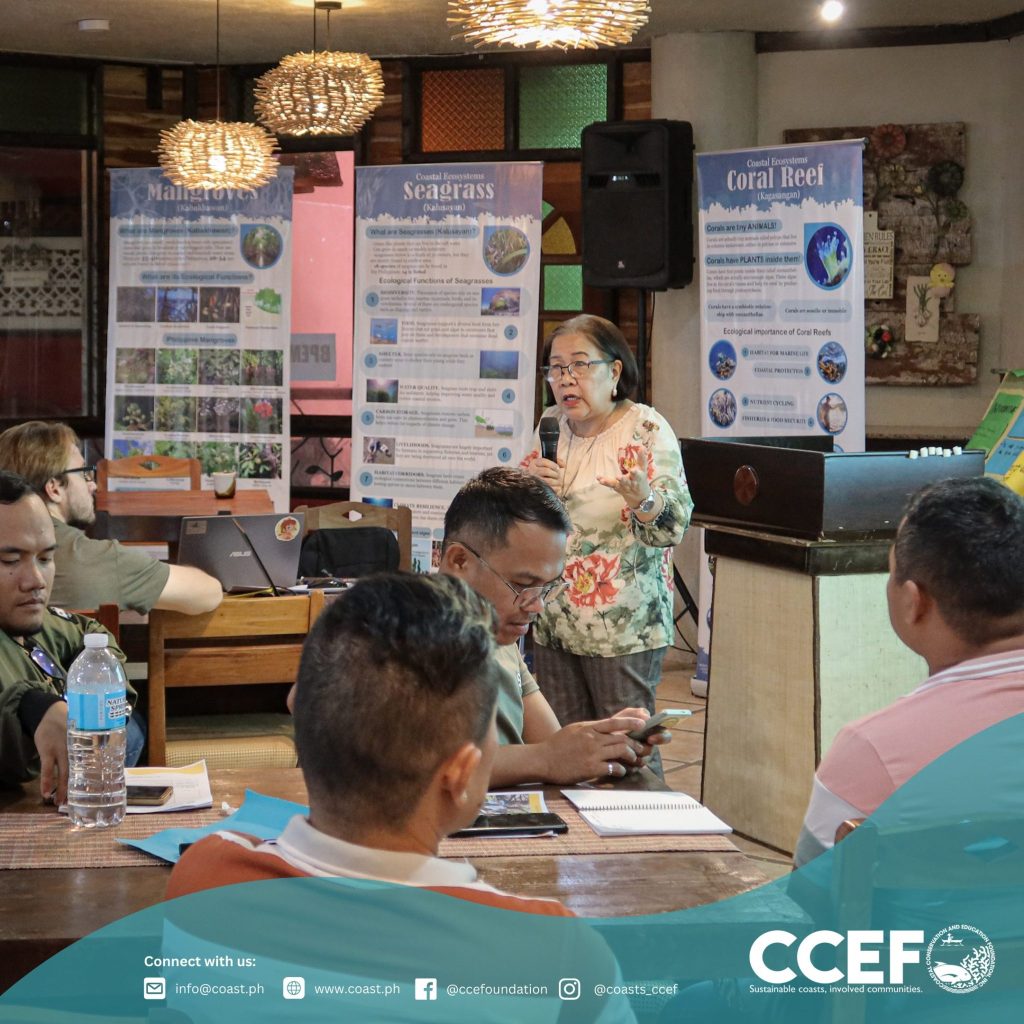 The activity was facilitated by CCEF Consultant Mrs. Evelyn T. Deguit, together with the CCEF, who is a co‑author of the 2004 PCRA Training Guide Manual developed under the Coastal Resource Management Project (CRMP) and the Fisheries Improved for Sustainable Harvest (FISH) Project. Her contributions have shaped PCRA practices that continue to guide coastal resource assessments across the Philippines today.